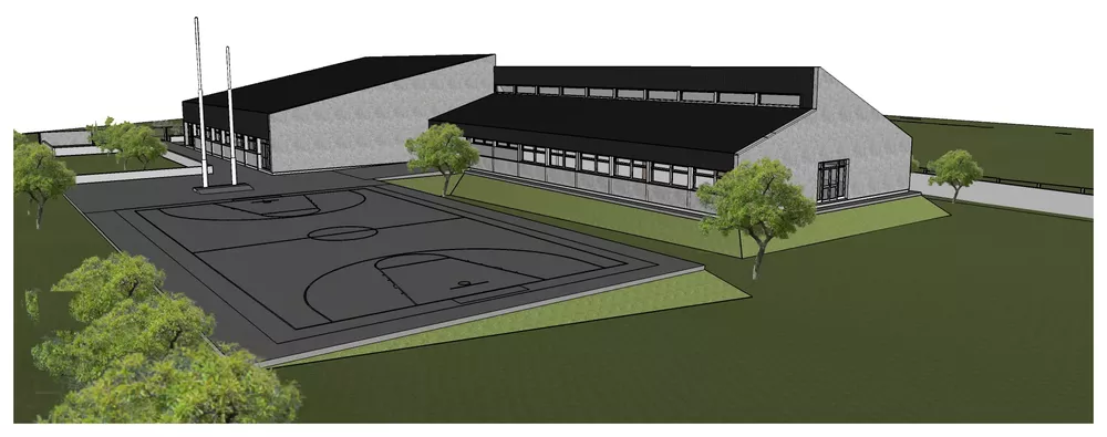 El proyecto contempla áreas de gobierno, sala de profesores, siete aulas, biblioteca, sala de informática y SUM; baterías de sanitarios para estudiantes y para docentes, depósito de educación física, sector de cocina con dependencias y kiosko.